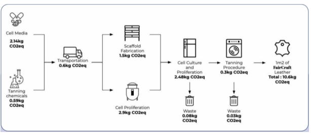 Faircraft leather is made out of bovine skin stem cells cultivated in a controlled lab environnement following a 3-step procedure:
