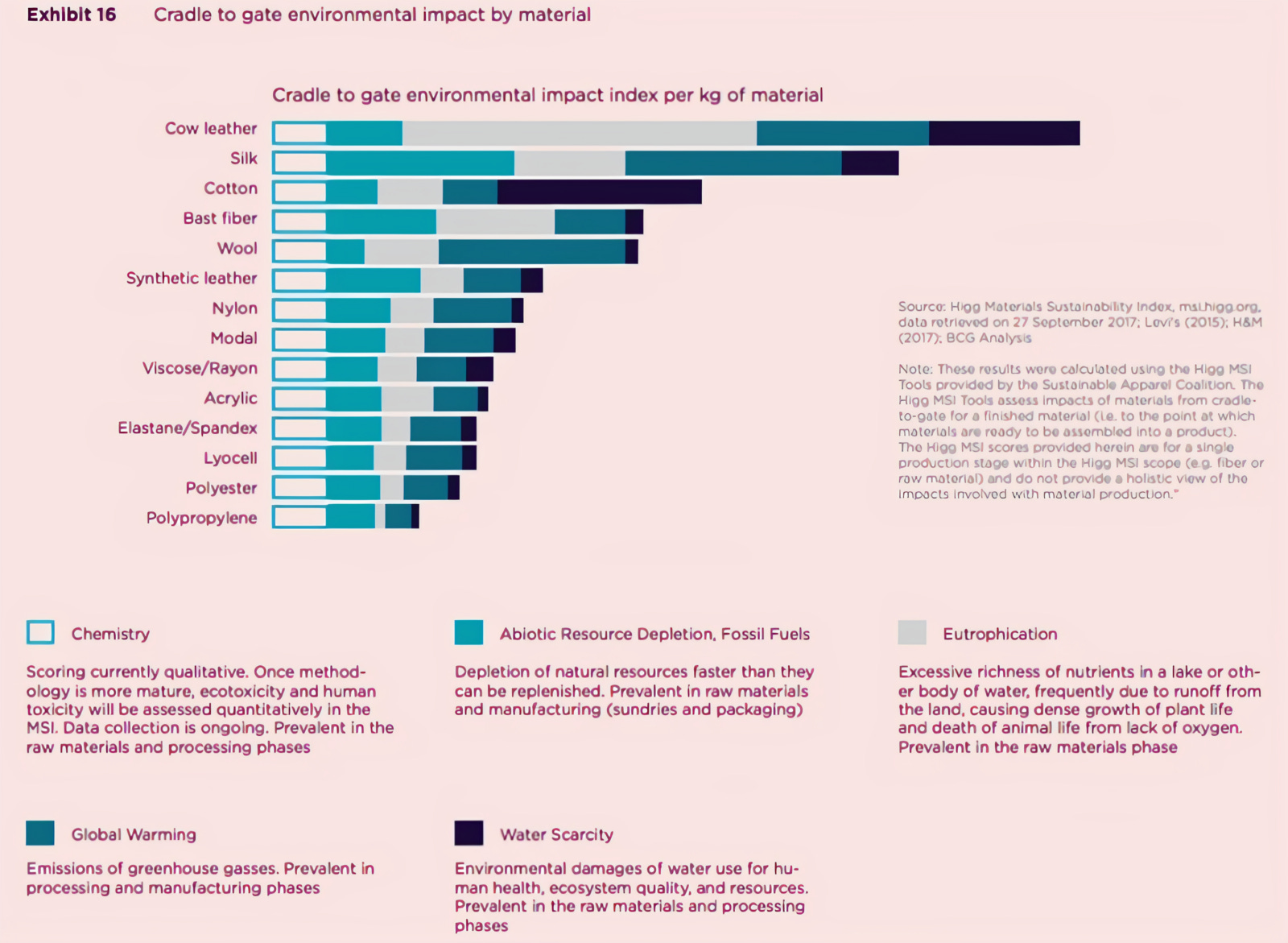 Hence, leather finds itself at the very top of the environmental impact charts (by a lot) when compared to other fashion materials due to both its inefficient & resource-intensive farming practices as well as the harmful environmental impact of the chemical-based âtanningâ process.